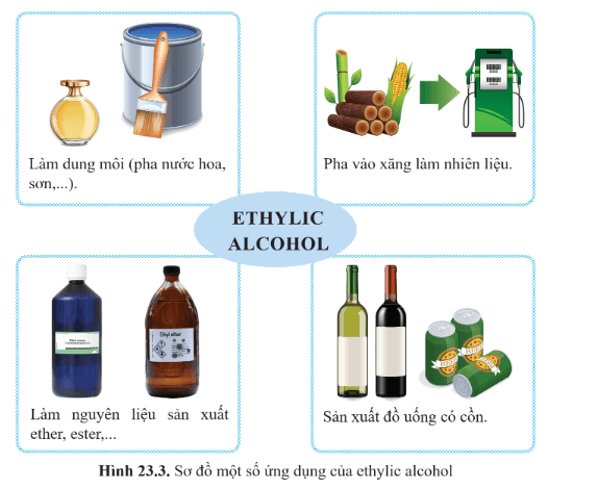 Ethylic alcohol được ứng dụng trong nhiều lĩnh vực của đời sống và sản xuất. Những ứng dụng chủ yếu của ethylic alcohol được trình bày trong hình: