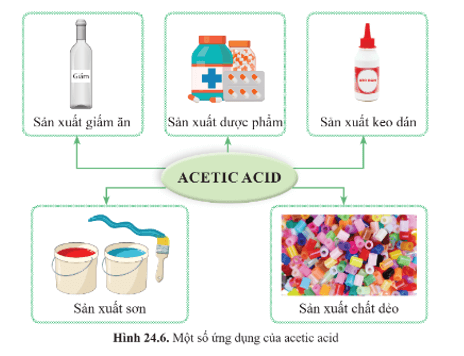 - Acetic acid có nhiều ứng dụng trong đời sống và sản xuất. Một số ứng dụng chủ yếu của acetic acid được trình bày trong hình: