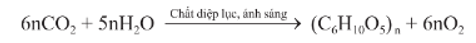 - Cây xanh tạo ra tinh bột và cellulose từ CO2 và H2O, nhờ tác dụng của chất diệp lục và năng lượng của ánh sáng mặt trời. Quá trình đó được gọi là quá trình quang hợp và được biểu diễn như sau: