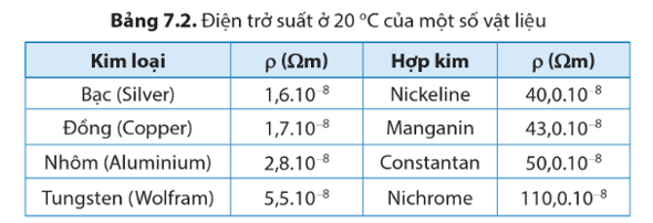 + ρ là điện trở suất của vật liệu làm dây dẫn (Ωm)