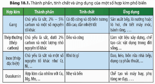 Gang, thép và hợp kim nhôm là các hợp kim phổ biến có thành phần, tính chất đặc trưng với nhiều ứng dụng quan trọng trong đời sống và sản xuất.