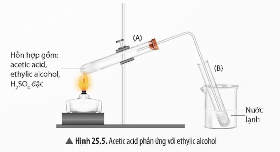 Phản ứng giữa acetic acid với ethylic alcohol ở nhiệt độ thích hợp, có H2SO4 đặc làm chất xúc tác tạo thành ester (ethyl acetate), được gọi là phản ứng ester hoá.