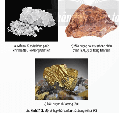 - Trong vỏ Trái Đất, các nguyên tố hoá học tồn tại chủ yếu ở dạng các hợp chất như oxide, muối và một số đơn chất kim loại, phi kim.