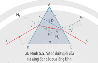 - Tia IJ tới mặt bên AC dưới góc tới j. Tại J, vẽ tia khúc xạ JR lệch xa pháp tuyến N2N2’với góc khúc xạ j.