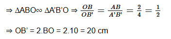 Vậy màn cách thấu kính một khoảng OB’ = 20 cm.