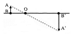 Ảnh đối xứng với vật qua quang tâm O thì kích thước của vật bằng kích thước của ảnh: AB = A’B’ = 5 cm.