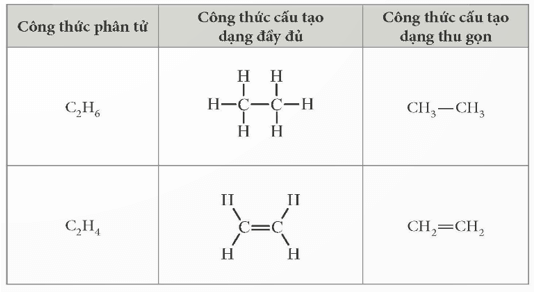 + Công thức cấu tạo còn được viết dưới dạng thu gọn bằng cách viết gộp nguyên tử hydrogen vào nguyên tử liên kết với nó thành từng nhóm.