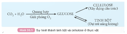 - Tinh bột và cellulose ở thực vật được hình thành từ quá trình quang hợp, có vai trò: