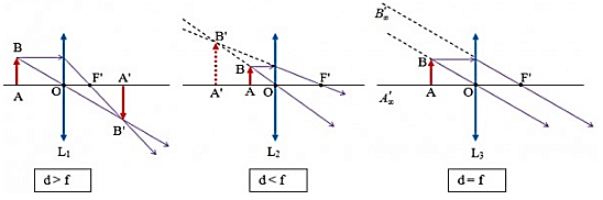Quy ước: Ảnh thật được biểu diễn bằng mũi tên nét liền, ảnh ảo được biểu diễn bằng mũi tên nét đứt.