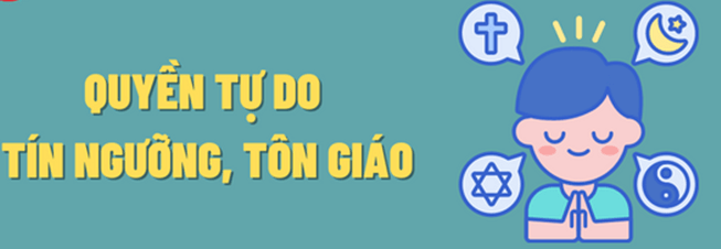 + Mọi người có quyền tự do tín ngưỡng, tôn giáo, theo hoặc không theo một tôn giáo nào. Mỗi người có quyền bày tỏ niềm tin tín ngưỡng, tôn giáo; thực hành lễ nghi tín ngưỡng, tôn giáo; tham gia lễ hội; học tập và thực hành giáo lí, giáo luật tôn giáo.