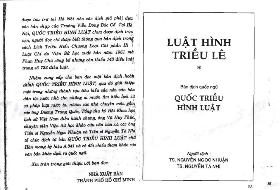 + Năm 1483, dưới thời Lê sơ, bộ Quốc triều hình luật (còn gọi là: Luật Hồng Đức) được ban hành.