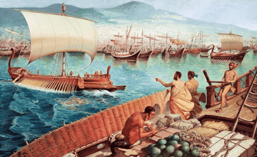 Buôn bán tại cảng biển ở Hy Lạp cổ đại (minh họa)