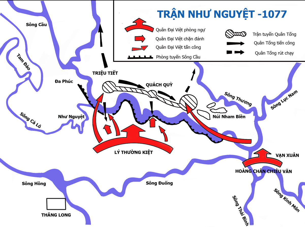 + Tháng 1/1077, khoảng 10 vạn quân Tống do Quách Quỳ và Triệu Tiết chỉ huy vượt ải Nam Quan tiến vào Thăng Long, nhưng bị chặn lại ở bờ Bắc sông Như Nguyệt.