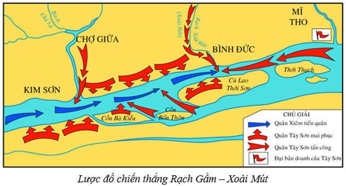 Trận đánh Rạch Gầm - Xoài Mút có ý nghĩa quyết định tới thắng lợi trong cuộc chiến đấu chống quân Xiêm của nghĩa quân Tây Sơn (1785).