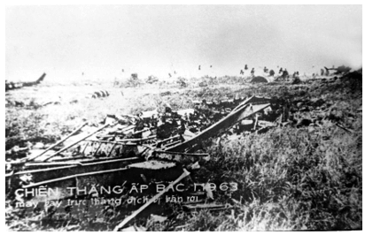 Máy bay trực thăng của địch bị bắn rơi trong trận Ấp Bắc