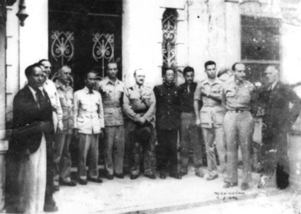 Chủ tịch Hồ Chí Minh và các đại biểu Anh, Mỹ, Trung Quốc tại buổi kí kết Hiệp định Sơ bộ