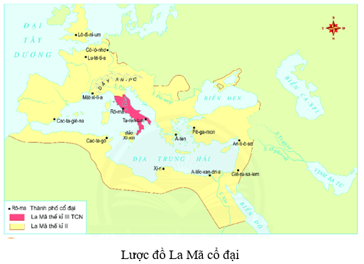 Lời giải: Đầu thế kỉ II TCN, lãnh thổ của đế chế La Mã bao gồm toàn bộ vùng đất xung quanh Địa Trung Hải, vùng ven bờ Đại Tây Dương và quần đảo Anh.
