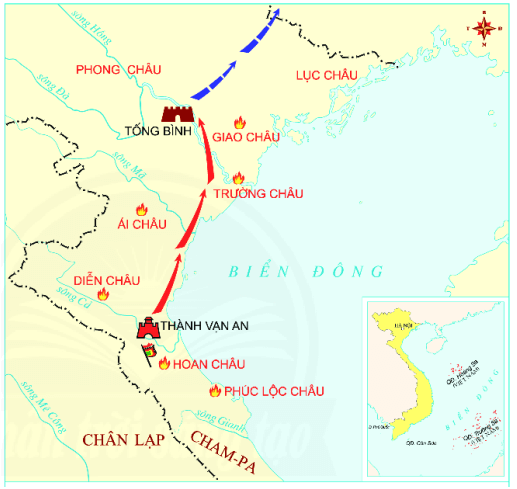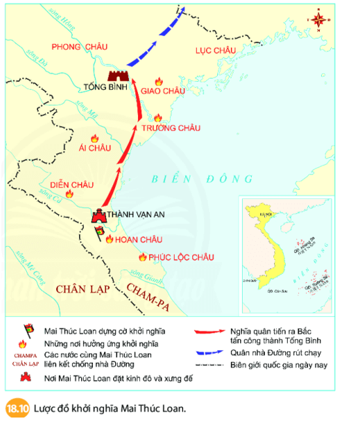 - Lược đồ trên thể hiện diễn biến chính của cuộc khởi nghĩa Mai Thúc Loan: