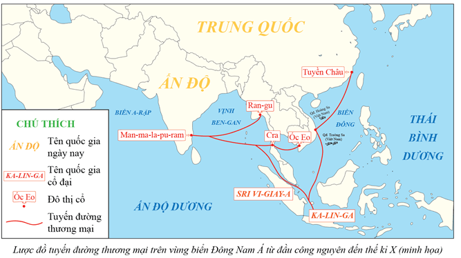 Câu 2. Trong khoảng mười thế kỉ đầu công nguyên, ở Đông Nam Á đã xuất hiện một số thương cảng sầm uất, như