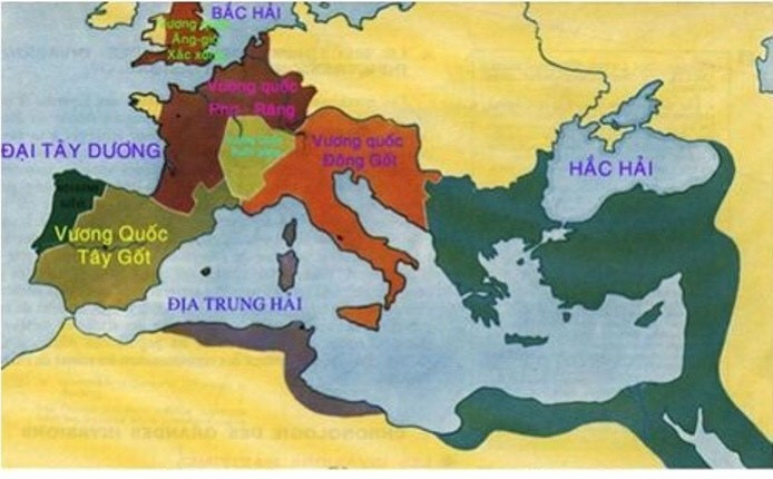 Lược đồ các vương quốc ở Tây Âu thế V - VI