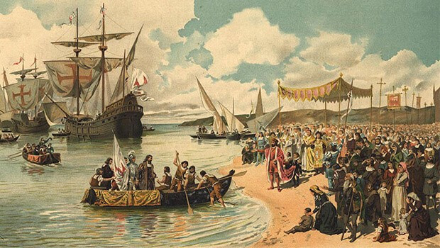 Tây Ban Nha, Bồ Đào Nha là hai nước đi đầu trong quá trình tìm kiếm những vùng đất mới (SGK 7 - trang 9)
