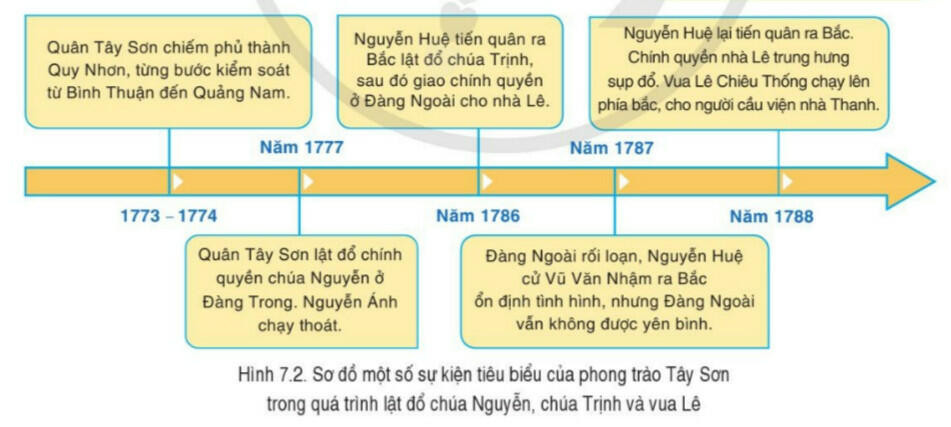 - Lực lượng và thanh thế nghĩa quân ngày càng lớn mạnh, lần lượt lật đổ chính quyền chúa Nguyễn, chúa Trịnh và vua Lê.