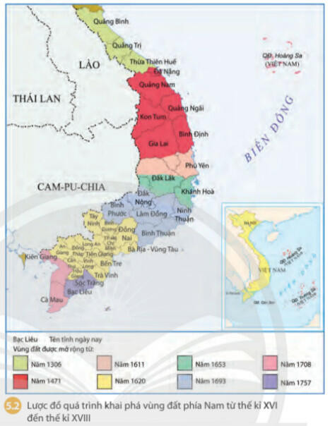 1. Khái quát quá trình khai phá vùng đất phía Nam từ thế kỉ XVI đến thế kỉ XVIII