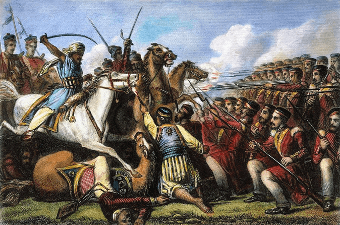 Binh đoàn Xi-pay tấn công quân đội Anh tại trận Can-pua vào năm 1857