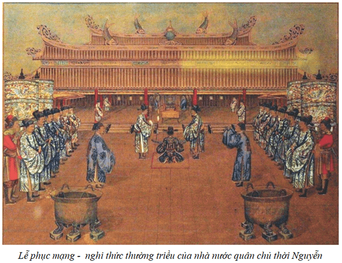- Năm 1815, nhà Nguyễn ban hành bộ Hoàng Việt luật lệ (Luật Gia Long), với các điều luật bảo vệ quyền uy tuyệt đối của nhà vua, củng cố trật tự phong kiến, trấn áp mọi âm mưu chống lại chính quyền.