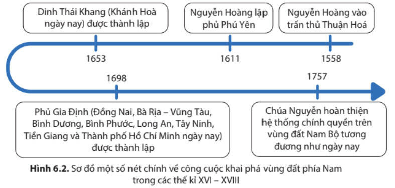 - Đến cuối thế kỉ XVIII, chúa Nguyễn kiểm soát vùng đất rộng lớn từ phía nam dải Hoành Sơn đến mũi Cà Mau, bao gồm cả các đảo, quần đảo ở Biển Đông và vịnh Thái Lan.