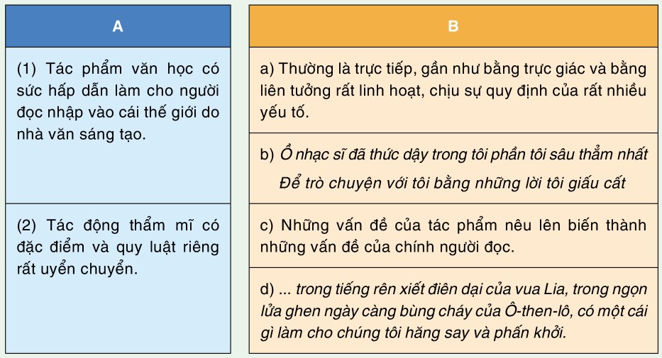 Câu 1: Theo văn bản trên, một tác phẩm văn học được xem là hấp dẫn khi tác phẩm ấy khiến cho người đọc: