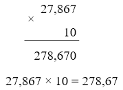 Nhận xét: Nếu ta chuyển dấu phẩy của số 27,867 sang bên phải một chữ số ta cũng được 278,67.