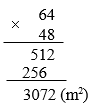 Ta phải thực hiện phép tính: 6,4 x 4,8 = ? (m2)
