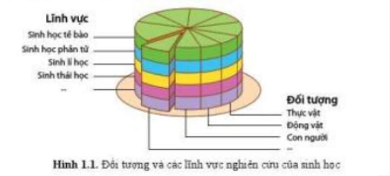Quan hệ giữa đối tượng và các lĩnh vực nghiên cứu trong sinh học được thể hiện qua hình 1.1.