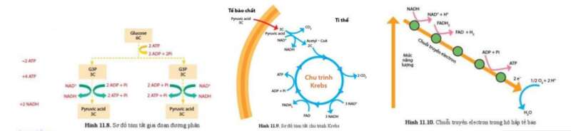 Quá trình hô hấp tế bào gồm 3 giai đoạn là: Đường phân → Oxi hoá pyruvic acid và chu trình Krebs → Chuỗi truyền electron và tổng hợp ATP.