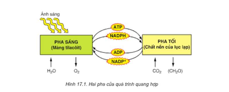 Quang hợp diễn ra ở lục lạp, chia thành 2 pha là pha sáng và pha tối: