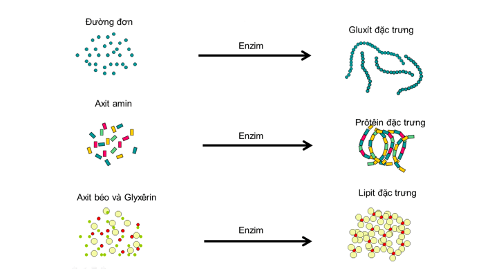 Tổng hợp các chất trong tế bào là quá trình chuyển hóa những chất đơn giản thành những chất phức tạp trong tế bào với sự xúc tác của enzyme.