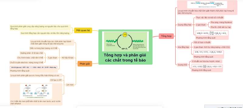 Sơ đồ tư duy tổng hợp và phân giải các chất trong tế bào: