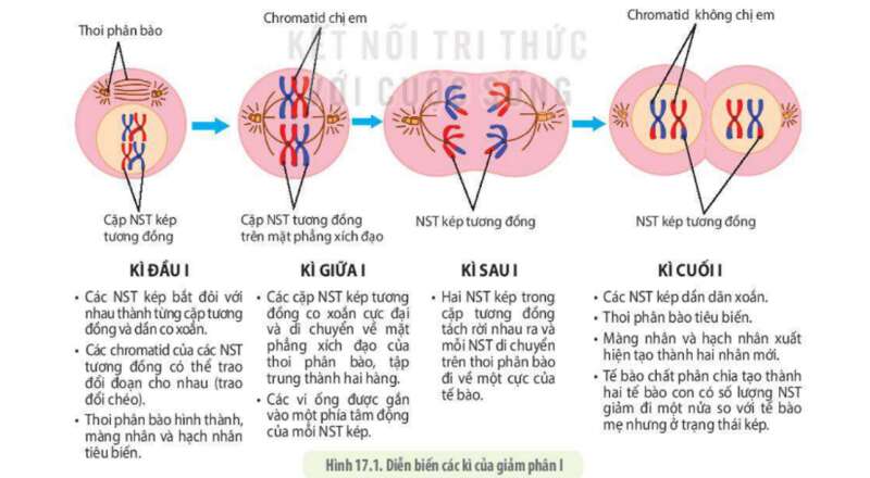 Giảm phân I làm cho số lượng nhiễm sắc thể giảm đi một nửa và tạo ra các tổ hợp nhiễm sắc thể mới.