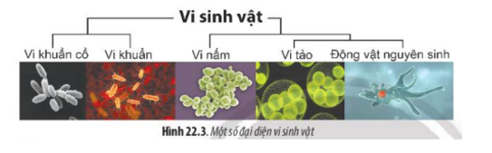 Vi sinh vật gồm có các nhóm: vi khuẩn và vi sinh vật cổ (giới Khởi sinh), tảo đơn bào và nguyên sinh động vật (giới Nguyên sinh), vi nấm (giới Nấm).