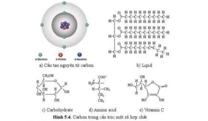 Carbon có 4 electron tự do tham gia liên kết cộng hóa trị với các nguyên tử carbon khác và các nguyên tử khác → Nguyên tử carbon có thể tạo nên mạch "xương sống" của các hợp chất hữu cơ chính có trong tế bào như protein, nucleic acid, carbohydrate, lipid.
