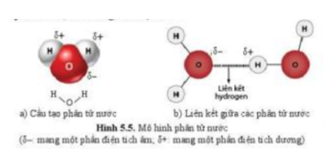 Trong phân tử nước, nguyên tử O có khả năng hút cặp electron mạnh hơn tạo nên liên kết phân cực với nguyên tử H dẫn đến nguyên tử O mang một phần điện tích âm và nguyên tử H mang một phần điện tích dương.