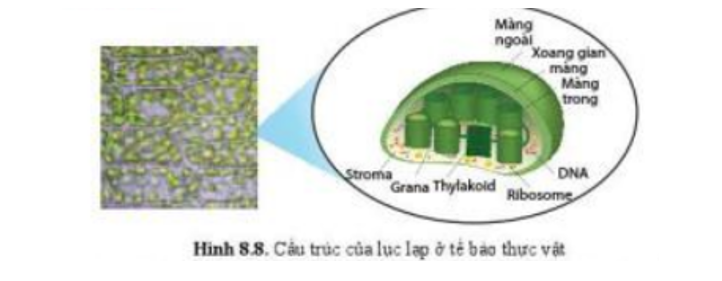 Lục lạp là bào quan chỉ có ở tế bào thực vật. Lục lạp hình bầu dục, được bao bọc bởi 2 lớp màng giống như ti thể. Bên trong lục lạp có hệ thống túi dẹp gọi là thylakoid - chứa sắc tố hấp thụ ánh sáng. Enzyme quang hợp có cả ở chất nền (stroma) và hệ thống thylakoid để chuyển hóa năng lượng ánh sáng thành năng lượng dự trữ trong phân tử carbohydrate.