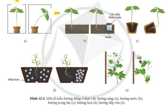 Đặt hạt đậu mới nảy mầm ở vị trí nằm ngang, sau một thời gian thấy thân cây cong lên còn rễ cây cong xuống, chứng tỏ thân cây có tính hướng đất âm còn rễ cây có tính hướng đất dương.