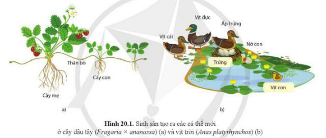- Sinh sản vô tính là hình thức sinh sản trong đỏ cá thể mới được tạo thành từ cá thể thế hệ trước, không có sự kết hợp của giao tử đực và giao tử cái.
