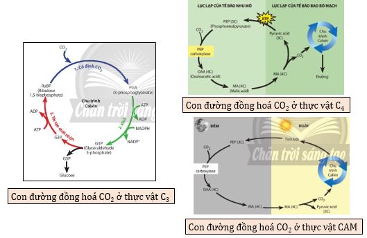 + Pha tối bao gồm các con đường C3, C4, CAM.