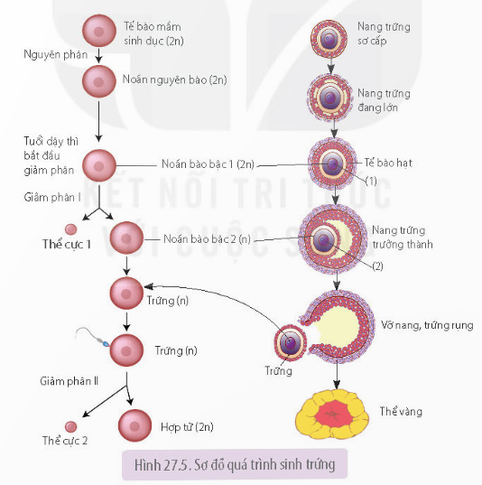 - Quá trình sinh trứng: diễn ra trong 2 buồng trứng của nữ giới
