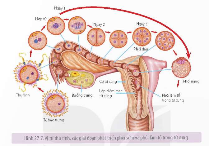 - Hợp tử phân bào liên tiếp trên đường di chuyển về phía tử cung làm tổ.