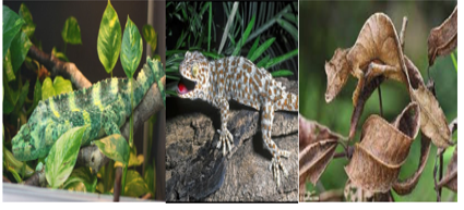 Tập hợp các kiểu màu sắc thân của tắc kè trong các môi trường khác nhau.