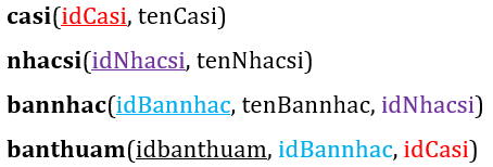 - Mỗi bảng đã có một khóa chính (tên trường được gạch chân).